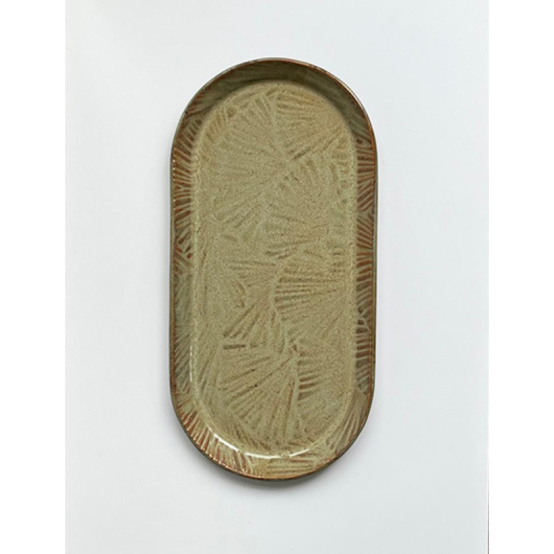 Ovalen schalen met ingedrukt patroon, in steeds andere kleuren en patronen. Vaatwasserbestendig (geldt voor alle producten).